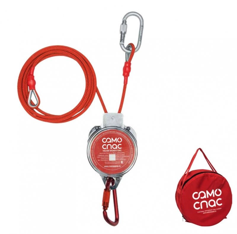 Строп из металлической цепи с монтажным карабином и амортизатором (соединён неразъёмным способом крепления и предназначен для снижения усилия торможения при падении)