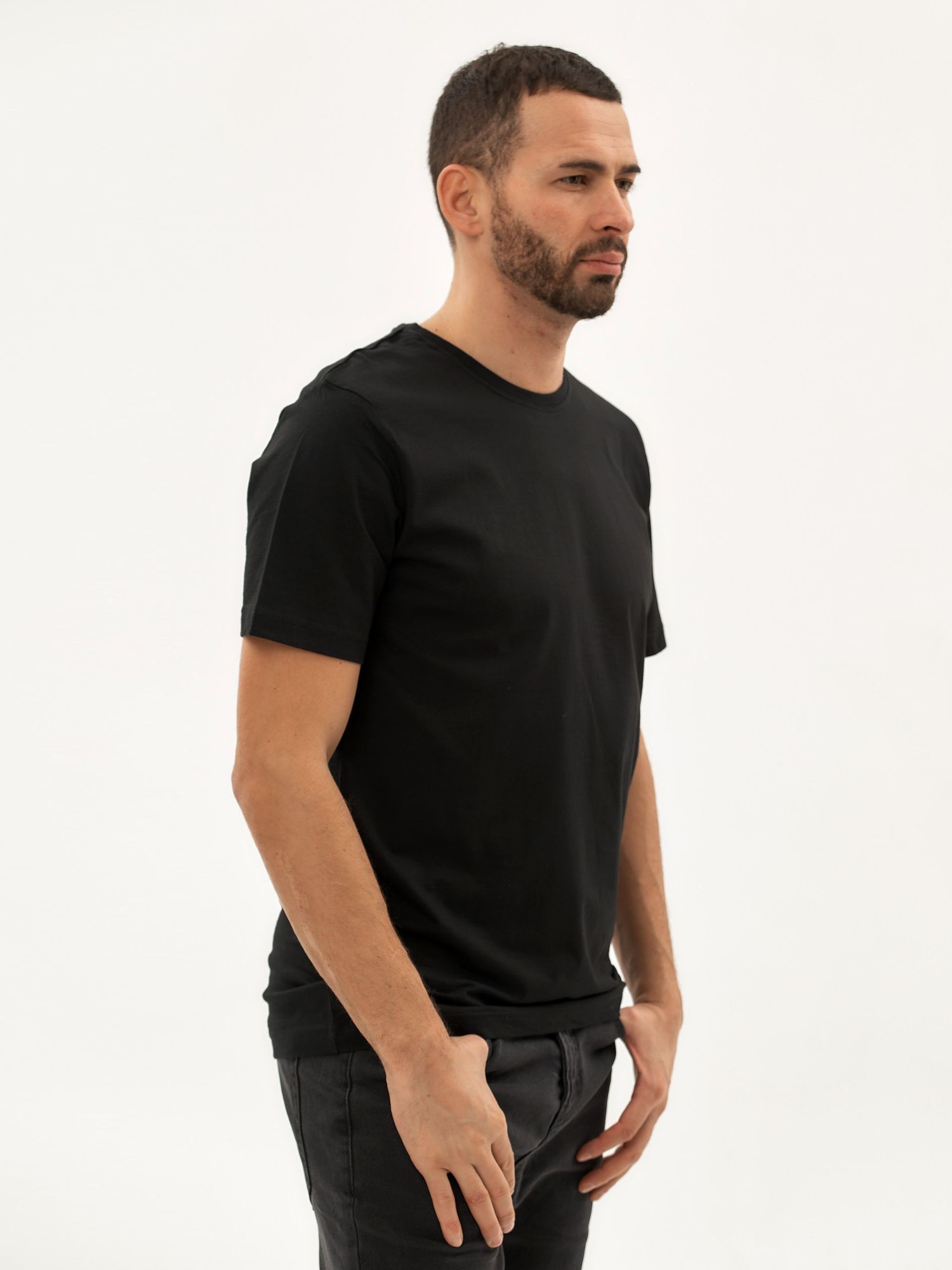 Трикотажная футболка – незаменимая составляющая гардероба любого мужчины. Хлопчатобумажный трикотаж обеспечивает комфорт телу, способствует нормальному воздухообмену, предотвращает прямое попадание солнечных лучей, оптимизирует процессы потоотделения, в зимний период является дополнительным источником тепла. Разнообразие цветов футболок позволяет подобрать идеальный вариант, соответствующий типу внешности, особенностям характера. Короткий рукав достигает середины предплечья, форма горловины подчёркивает сильную шею. Футболка не требует особого ухода, подлежит обычной стирке.