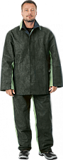 Утепленные костюмы позволяют выполнять сварочные работы при минусовых температурах. Благодаря огнеупорным свойствам кожевенного спила модель служит надежной защитой от искр и брызг расплавленного металла. В качестве теплоизоляционного материала используется ватин. Подкладка у модели бязевая, отложной воротничок подшит хлопчатобумажной тканью. Куртка застегивается на пуговицы, застежка защищена дополнительным клапаном. Карманы у модели накладные, расположены по бокам.